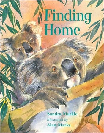 The first story is actually based on the real-life story of “Cinders,” a koala who has survived a couple of bushfires, and walked miles to find a new home and feeding ground when her was destroyed. Finding Home by Sandra Markle tells of a mother koala who climbs and crawls to safety when her trees are burned in bushfire: